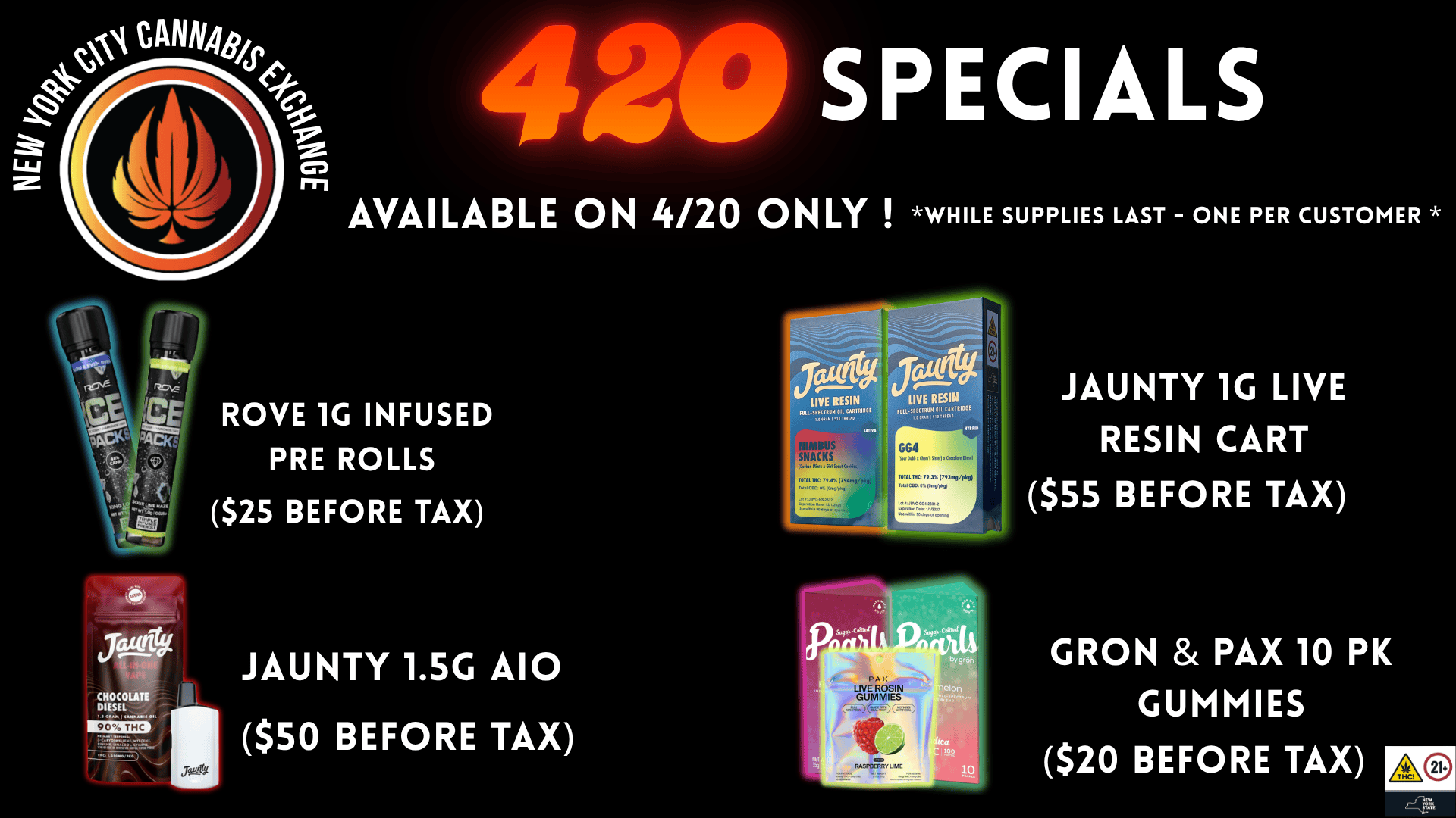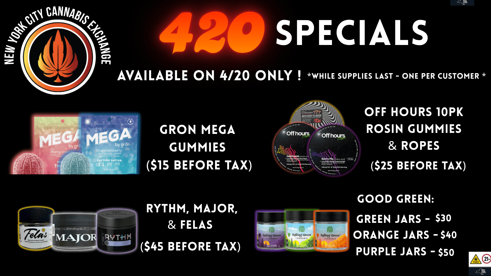 At New York City Cannabis Exchange, we take pride in offering top-quality cannabis products that cater to every preference and need. With a carefully curated selection and knowledgeable staff, we ensure a premium experience for all our customers, providing only the finest strains and products available.
